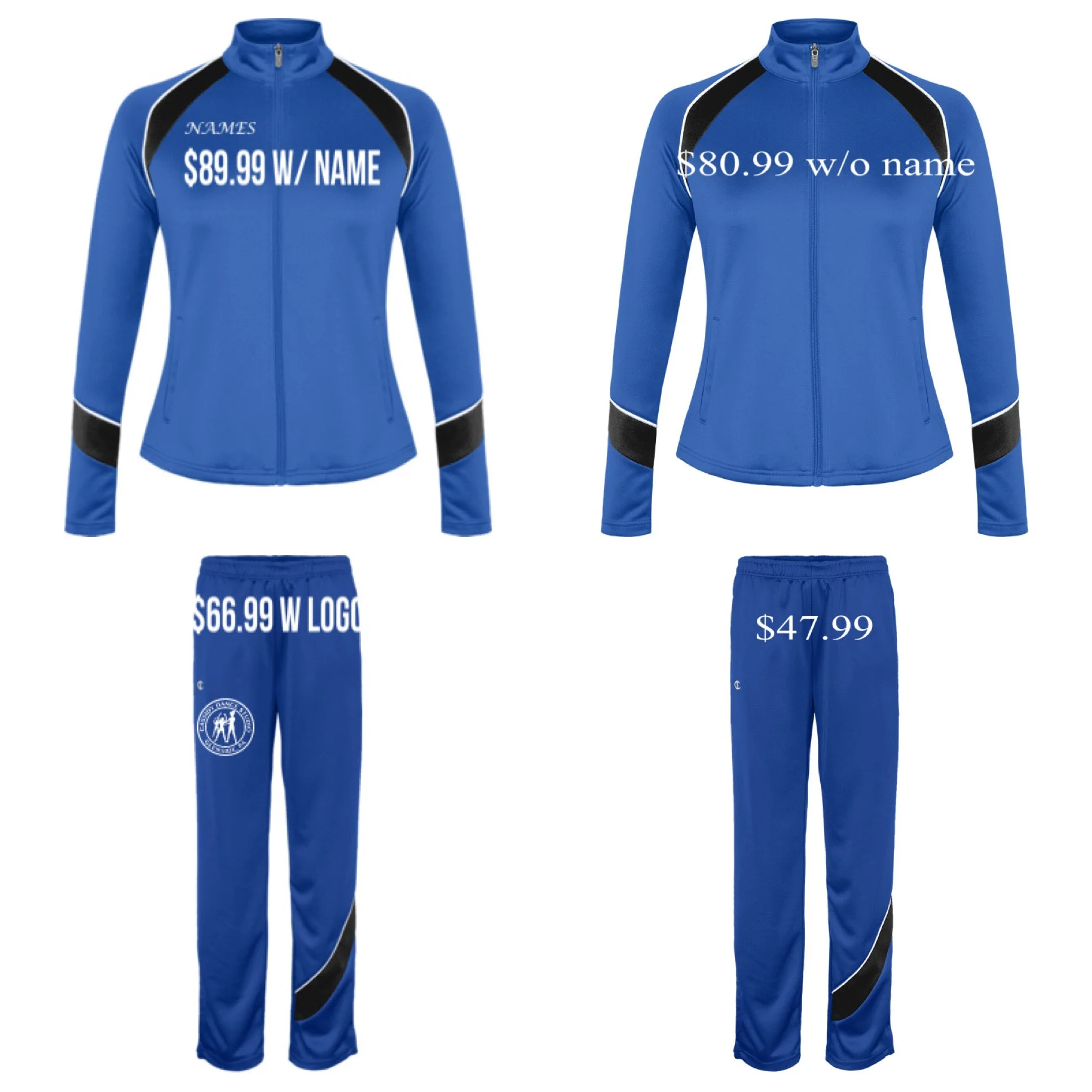 We are excited to announce our new teamwear! Jackets and pants are available with or without names. The pants are also available with or without the logo! Click the link below to order your items and they will ship directly to you!